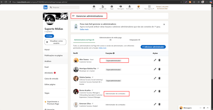1. Acesse as configurações da página da empresa no LinkedIn: